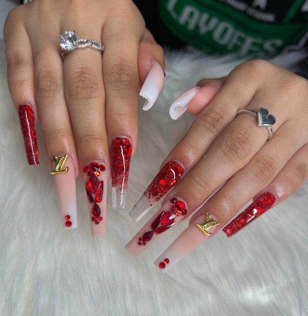 I use a variety of authentic Swarovski and crystals, gel polish, charms, nail piercings, and more to create my unique nail sets. I can draw cartoon characters, logos, and initials all on just your nails.